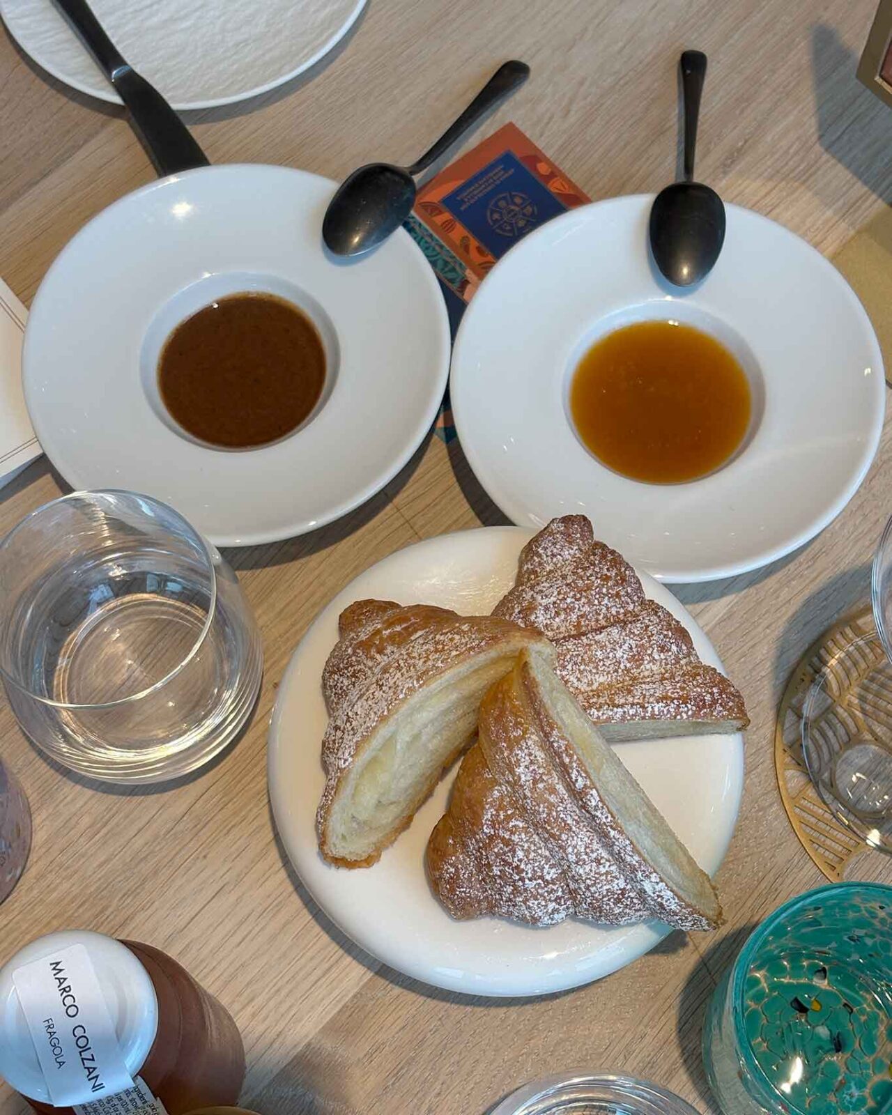 Aperto un anno fa, il Café di Louis Vuitton by Da Vittorio – il ristorante tre stelle Michelin di Brusaporto – offre un’esperienza all’altezza dei due nomi. A colazione troviamo croissant, fagottini al cioccolato e sfogliati alla vaniglia (4 €), il “panettone estivo” con albicocca, pesca e Moscato di Scanzo (10 euro), piccola pasticceria assortita (5 €) e l’iconico Monogram waffle, rigorosamente logato e proposto in tre versioni: con salmone affumicato (25 €), tzaziki, yogurt greco, menta e cetriolo (16 €) o con caviale, crême fraiche ed erba cipollina (35 €).