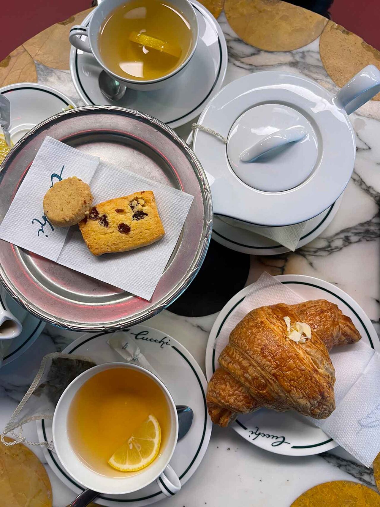 Ma veniamo al menù della colazione. Da provare la celebre torta rosa, un soffice pan di Spagna farcito con crema chantilly e ricoperto di glassa colorata. In carta si trovano anche krapfen (5 €), maritozzi e budini di riso (5,50 €), oltre a croissant e fagotti al cioccolato (2 €). Tra le proposte salate si possono scegliere panini al latte assortiti (5 €), tartine (da 8 €), toast (11 €) e panini vari (a partire da 8 €).