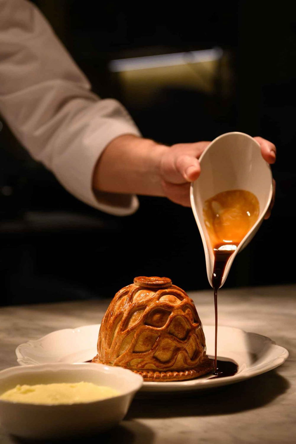 Oppure la tartare di manzo con erbe aromatiche croccanti, sfoglia ai semi e zabaione salato al dragoncello (18 €). Sempre come entrée Il mio cacio e ova (16 €), omaggio alla tradizione abruzzese e uno dei piatti meno costosi in carta.