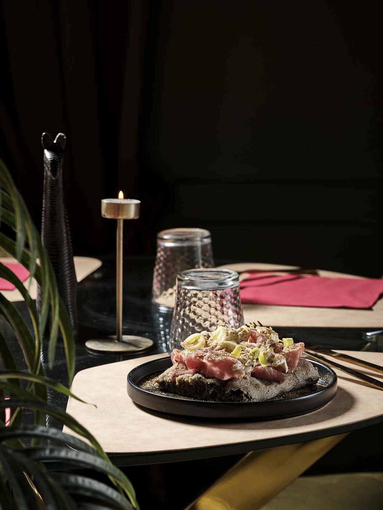- Piemontese. Burro al tartufo, salsiccia a crudo condita con senape al barbera e tartufo nero (16 €)