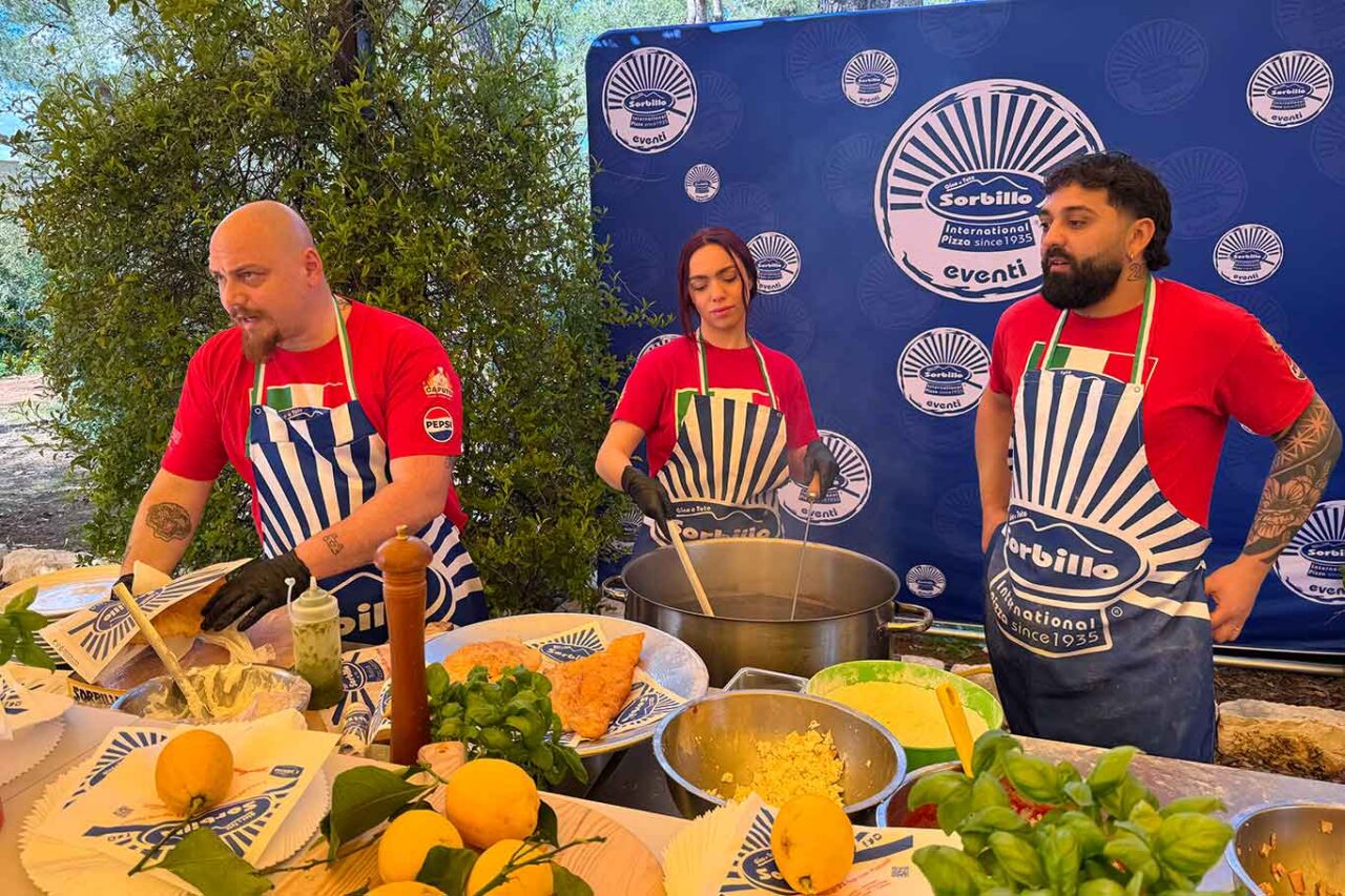 Al pranzo alla masseria in cui c’è la postazione della pizza fritta con la sua squadra Gino Sorbillo argomenta quanto detto nel dialogo con Bruno Vespa. “Occorrerebbe un passaporto delle materie prime per validare in Italia come all’estero quella manualità del pizzaiolo napoletano. È abbastanza inverosimile pensare che un pizzaiolo di Napoli nel corso di una storia centenaria abbia utilizzato farina, pomodori, olio, fiordilatte non italiano. Non dico strettamente napoletano o della Campania ma almeno italiano. Rischiamo un effetto paradossale di Italian sounding in cui diamo per pizza napoletana o italiana una pizza prodotta a partire da materie prime che non sono nazionali.