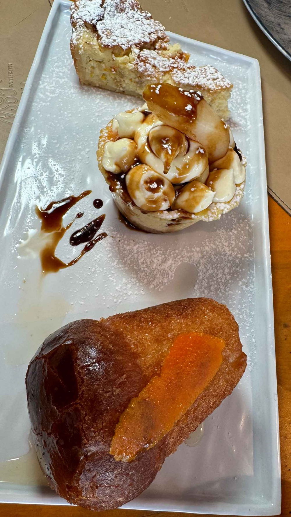 Chiudiamo ma per davvero con il trittico di dolci (6,50 euro ognuno) in cui dominano pastiera e babà.