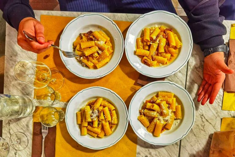 E infine i famosi e meravigliosi Rigatoni alla Carbonara di Sara. E questi, da soli, valgono il viaggio.